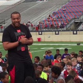The free clinic ran from 8-11:30 a.m. at Independence Stadium. Over 200 kids ages 7 through 12 turned out to hear Evans speak and get some instruction on the fundamentals of football.